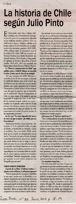 La historia de Chile según Julio Pinto [artículo] Julio Pinto ; [entrevistado por] Alejandro Lavquen.