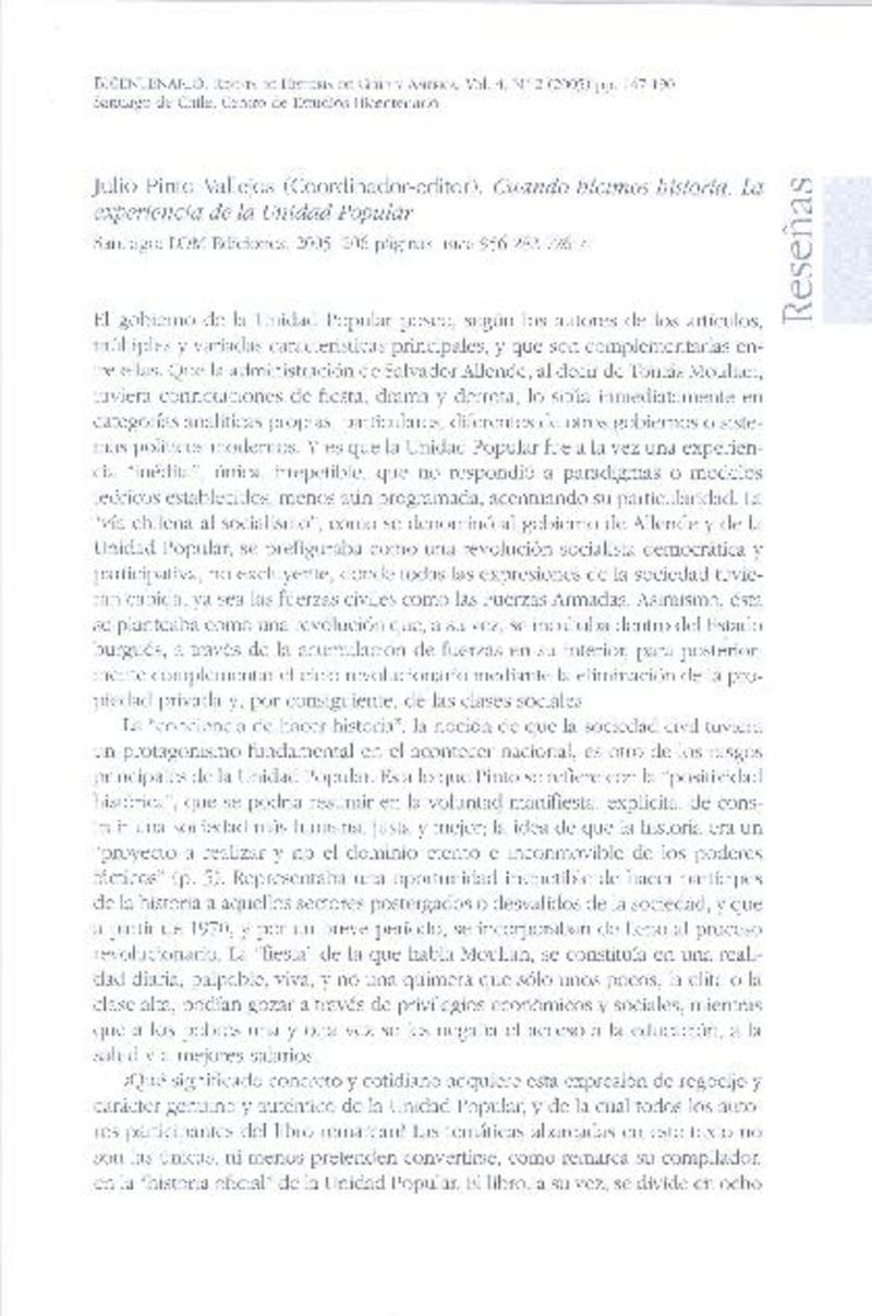 Autores chilenos - Pinto Vallejos, Julio - Cuando hicimos historia
