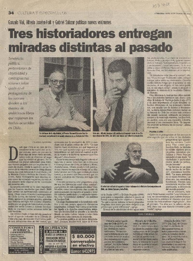 Tres historiadores entregan miradas distintas al pasado [artículo] Claudio Aguilera.