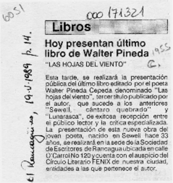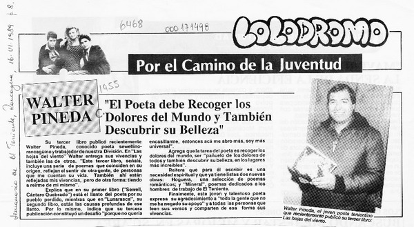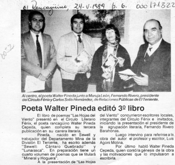 Poeta Walter Pineda editó 3er. libro [artículo].