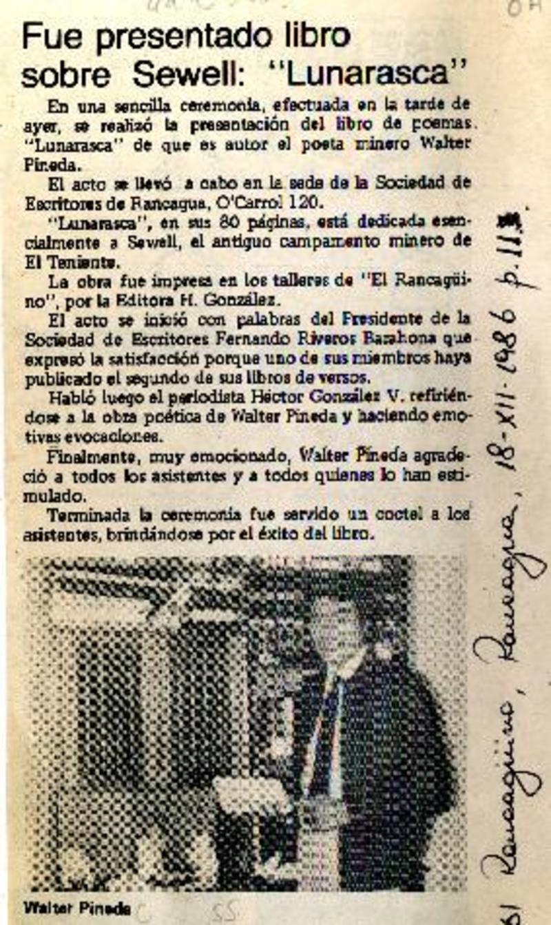 Fue presentado libro sobre Sewell, "Lunarasca" [artículo].