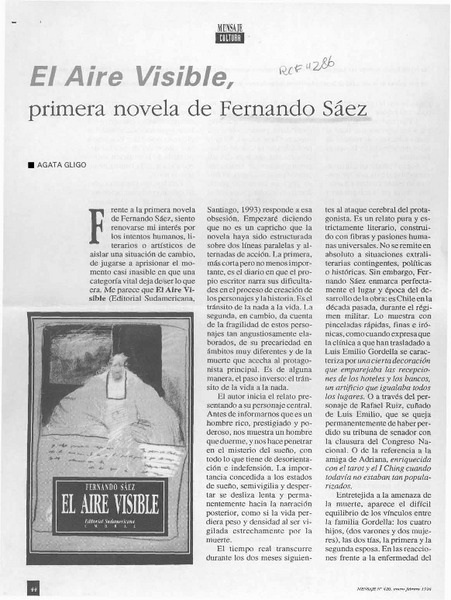 El aire visible, primera novela de Fernando Sáez [artículo] Agata Gligo.