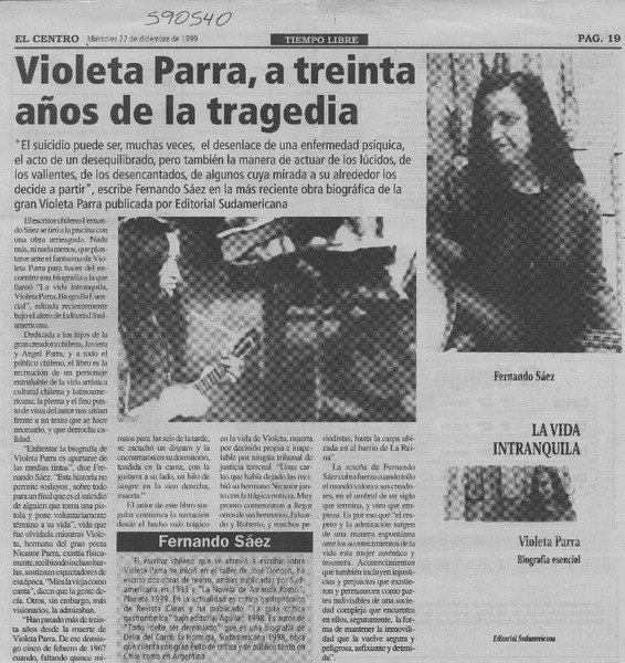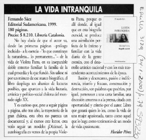 Autores chilenos - Parra, Violeta - Sáez, Fernando - "La vida intranquila"