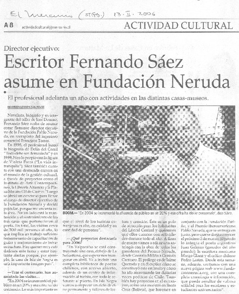 Escritor Fernando Sáez asume en Fundación Neruda [artículo] Maureen Lennon Zaninovic