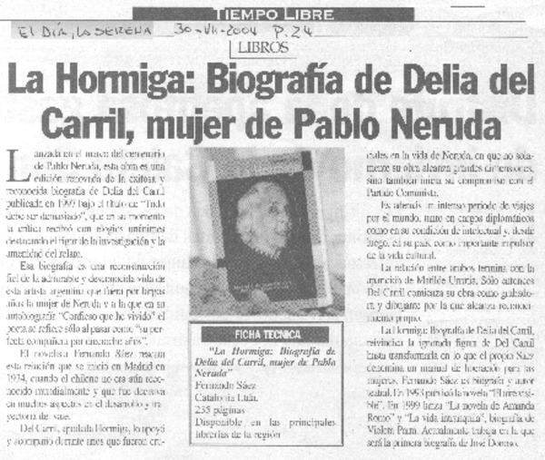 La Hormiga: biografía de Delia del Carril, mujer de Pablo Neruda [artículo].