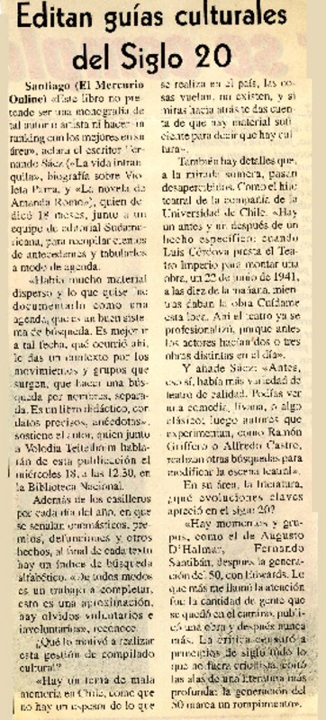 Autores chilenos - Guías culturales del Siglo 20 - Sáez, Fernando