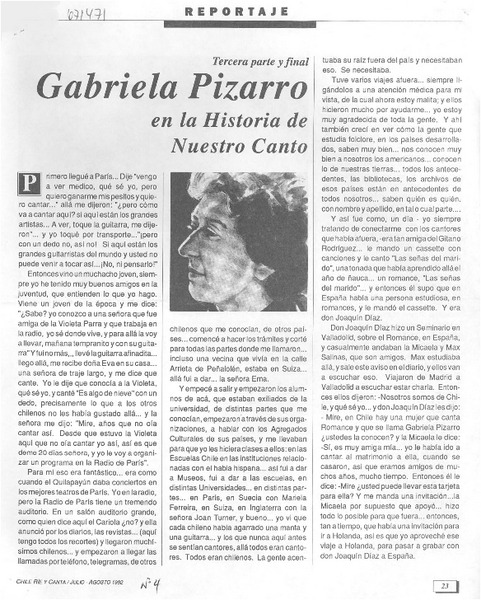 Gabriela Pizarro en la historia de nuestro canto [artículo] Guillermo Ríos Ch.
