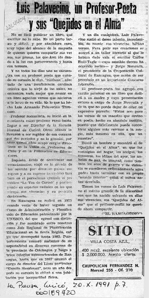 Luis Palavecino, un profesor-poeta y sus "Quejidos del alma" [artículo].