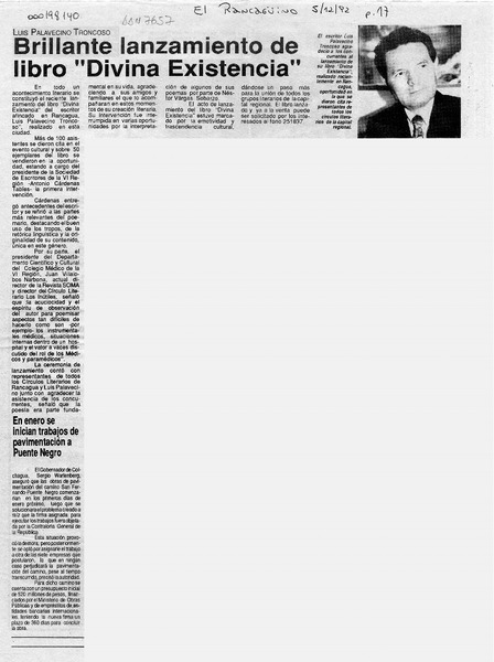 Brillante lanzamiento de libro "Divina existencia" [artículo].