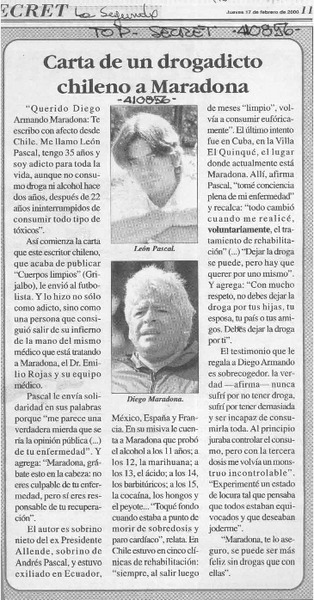 Carta de un drogadicto chileno a Maradona [artículo]