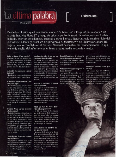 Autores chilenos - Entrevistas - Pascal, León - Crónicas sudacas de Volo Kalamaky