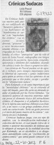 Autores chilenos - Pascal, León - Crónicas Sudacas