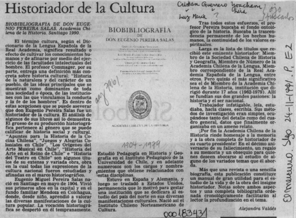 Historiador de la cultura [artículo] Alejandra Valdés.
