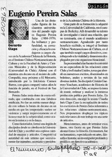 Eugenio Pereira Salas [artículo] Gerardo Claps.