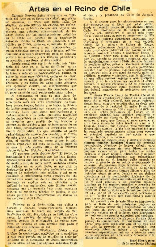 Artes en el reino de Chile [artículo] Raúl Silva Castro.