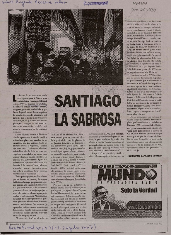 Santiago la sabrosa [artículo] Guillermo Carrasco Notario.