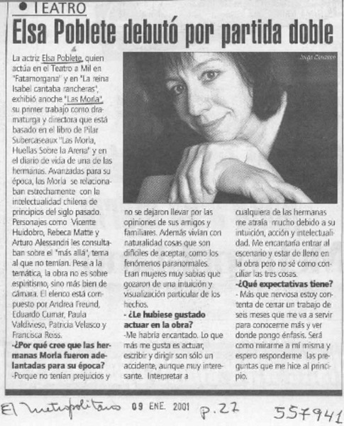 Las Morla, buen doble debut de Elsa Poblete [artículo] L. P.