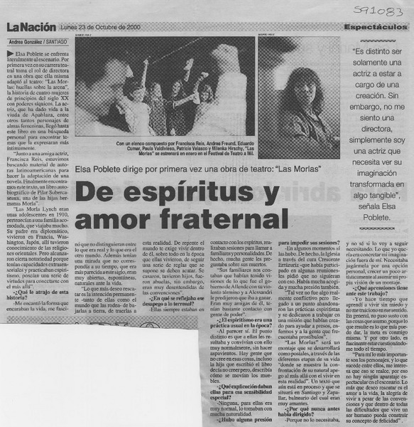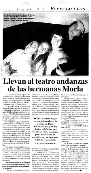 Llevan al teatro andanzas de las hermanas Morla : [entrevistas] [artículo] Javier Ibacache V.