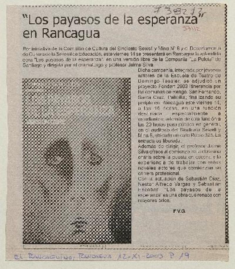 Los payasos de la esperanza" en Rancagua [artículo] F. V. G.