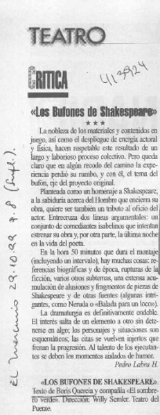 "Los bufones de Shakespeare" [artículo] Pedro Labra Herrera.