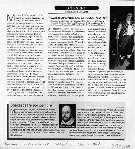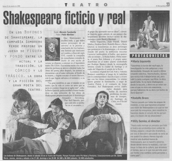 Llegan los bufones de Shakespeare [artículo] Marcela Fuentealba