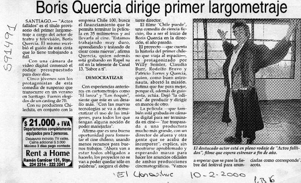 Boris Quercia dirige primer largometraje [artículo]