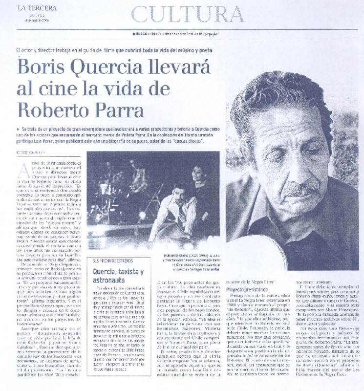 Boris Quercia llevará el cine la vida de Roberto Parra [artículo] Rodrigo González M.