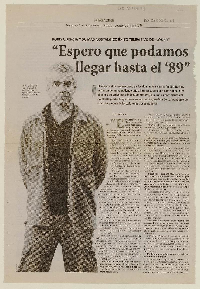 "Espero que podamos llegar hasta el '89" [entrevista] [artículo] Carlos Figueroa.