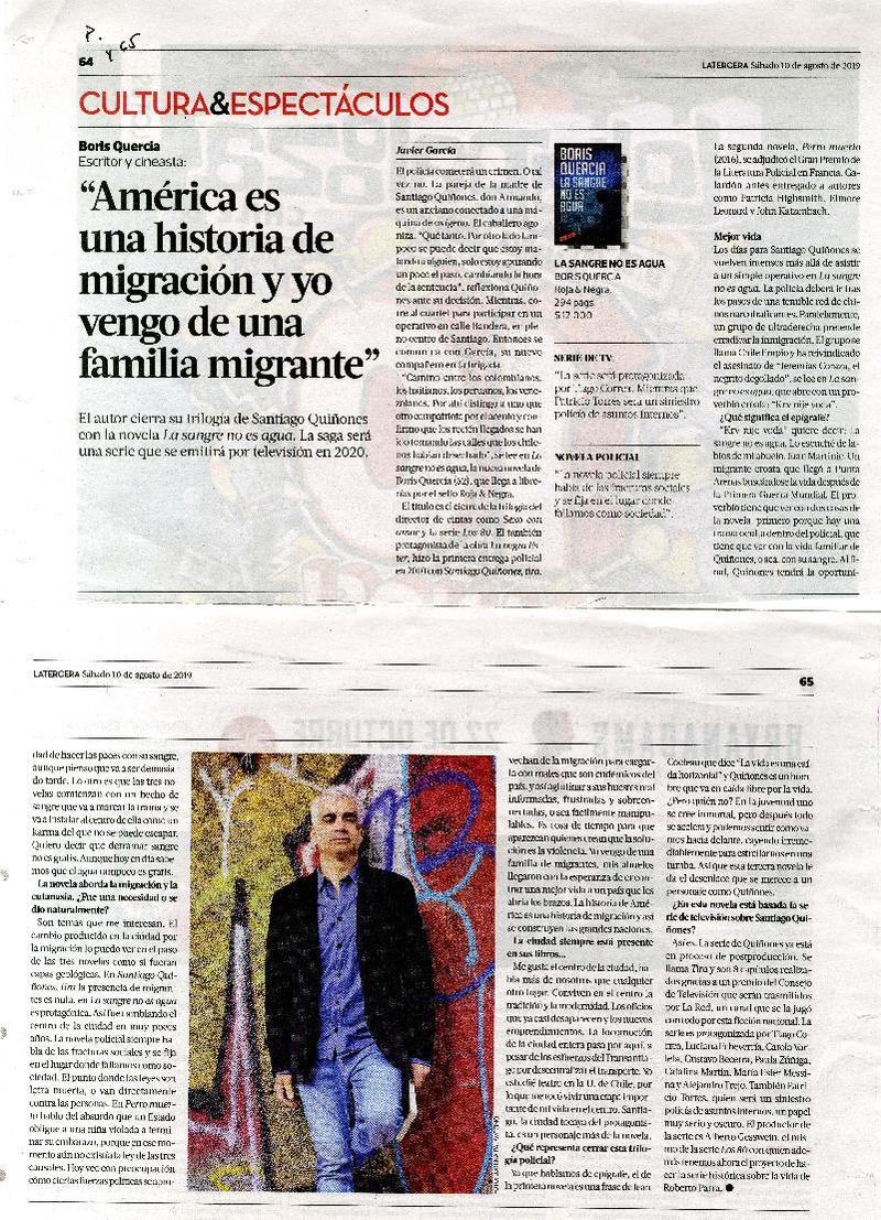 "América es una historia de migración y yo vengo de una familia migrante" [artículo] Javier García.