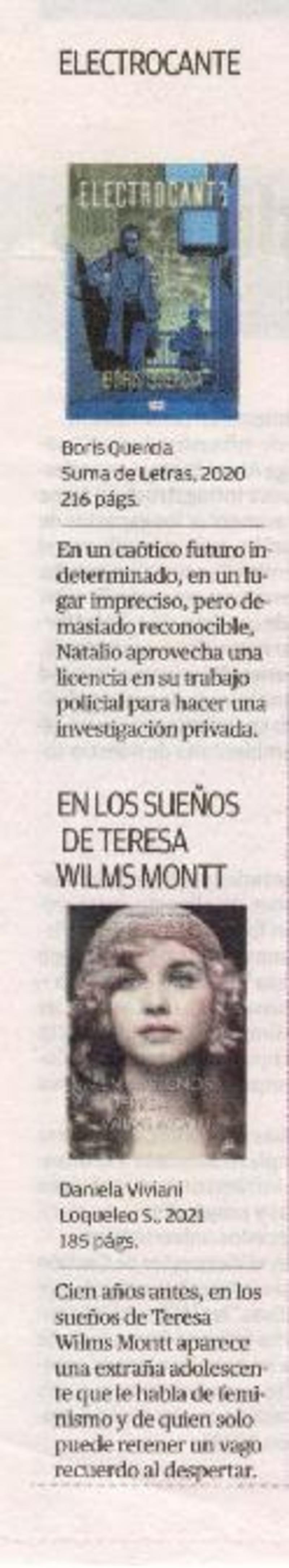 Autoras chilenas - Autores chilenos - Quercia, Boris - Viviani, Daniela - Electrocante - En los Sueños de Teresa Wilms Montt