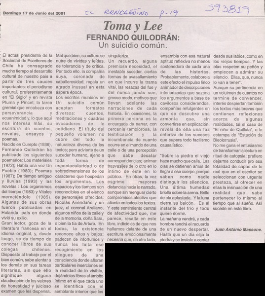 Autores chilenos - Quilodrán, Fernando - Suicidio común