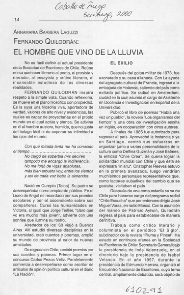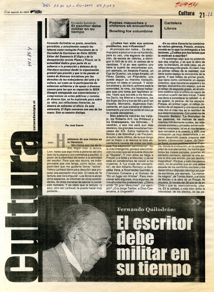 Autores chilenos - Quilodrán, Fernando - Entrevista