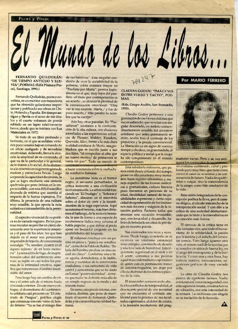 Autores chilenos - Quilodrán, Fernando - Godoy, Claudia - Imágenes entre verso y tacto - De tiempo antiguo y lluvia