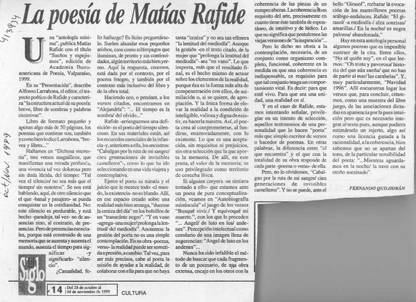 La poesía de Matías Rafide [artículo] Fernando Quilodrán