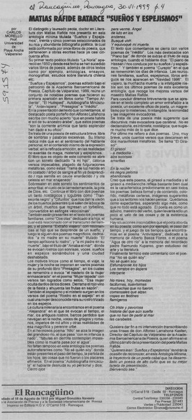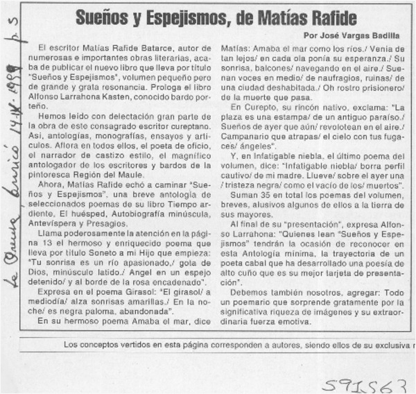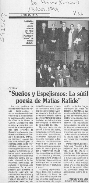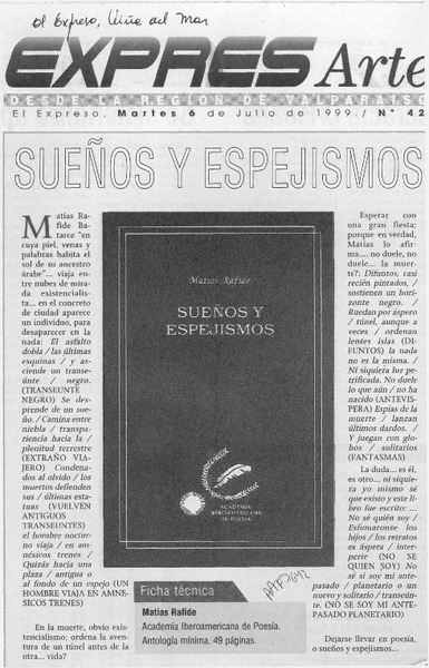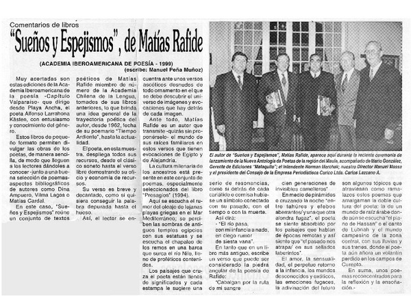 Matías Rafide y su libro "Sueños y espejismos" [artículo] Luis Merino Reyes