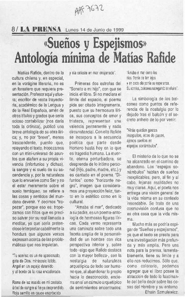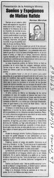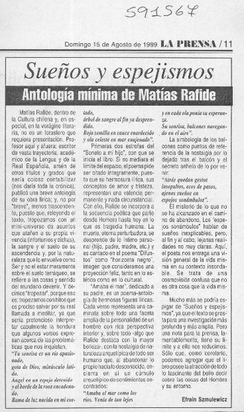 "Sueños y espejismos" antología mínima de Matías Rafide [artículo] Efraín Szmulewicz.