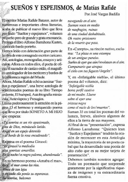 Sueños y espejismos, de Matías Rafide [artículo] José Vargas Badilla