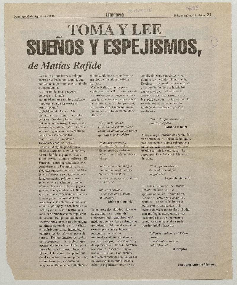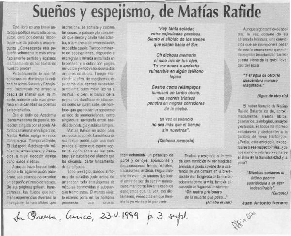 Sueños y espejismos (Antología mínima) Matías Rafide [artículo] Manuel Peña Muñoz
