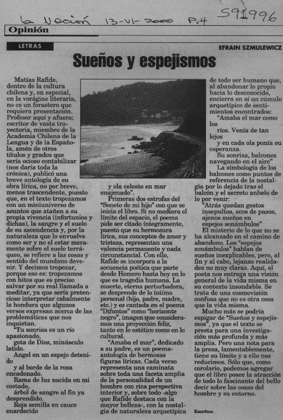 Sueños y espejismos [artículo] Efraín Szmulewicz