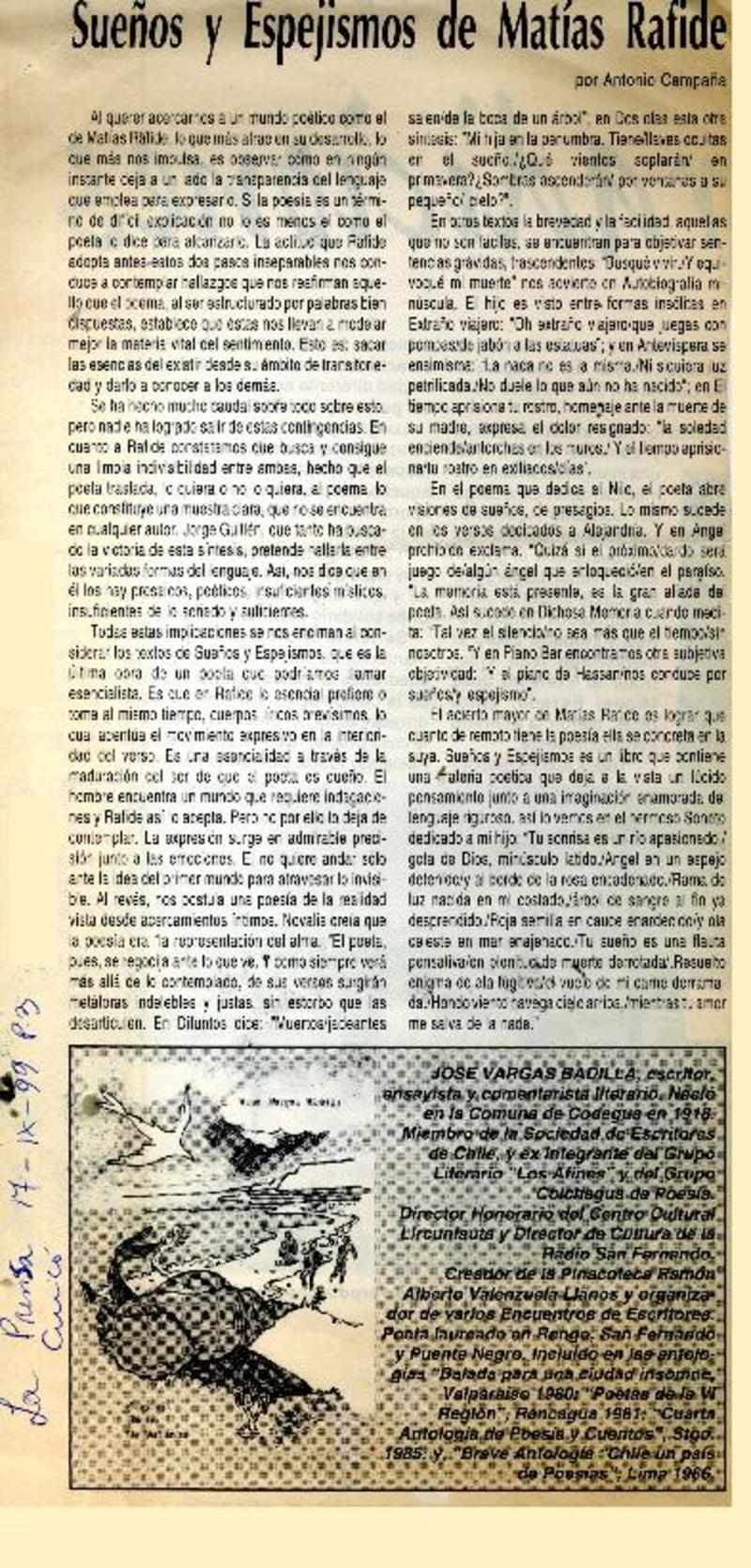 Sueños y espejismos de Matías Rafide [artículo] Antonio Campaña.
