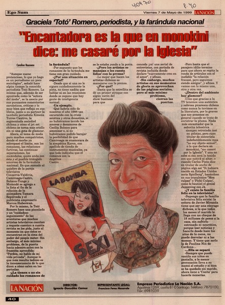 "Encantadora es la que en monokini dice, me casaré por la iglesia" [artículo] Carolina Rousseau