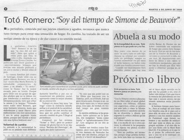 Totó Romero, "Soy del tiempo de Simone de Beauvoir" [artículo]