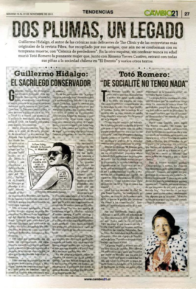 Autores chilenos - Romero, Graciela - Torres Cautivo, Ximena - [entrevista]