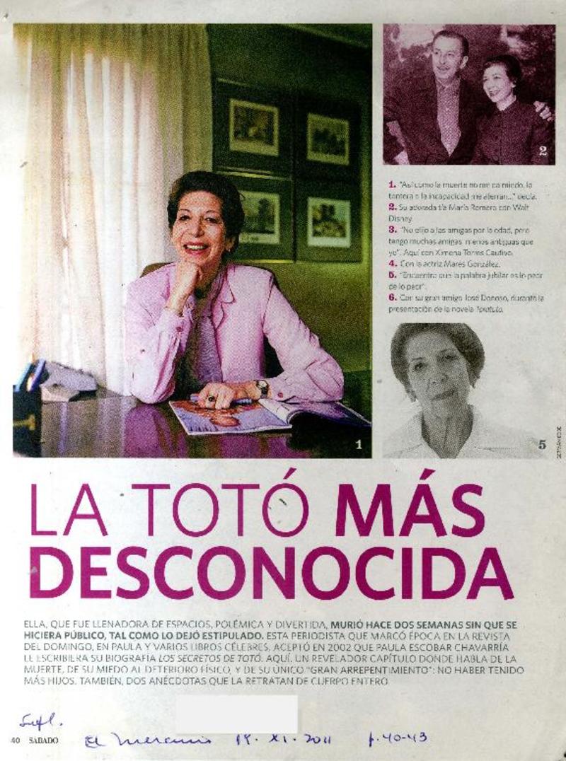 La Totó : memorias indiscretas [artículo] Paula Escobar.