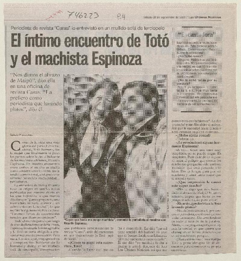 El íntimo encuentro de Totó y el machista Espinoza: [entrevistas] [artículo] Sergio Mardones L.