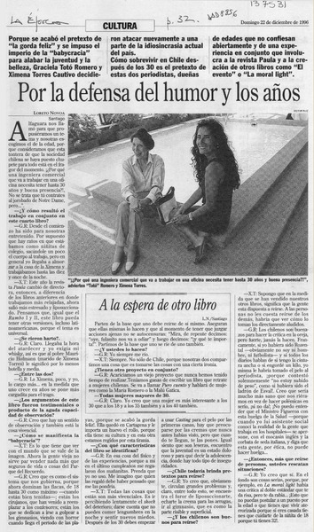 Por la defensa del humor y los años [artículo] Loreto Novoa.
