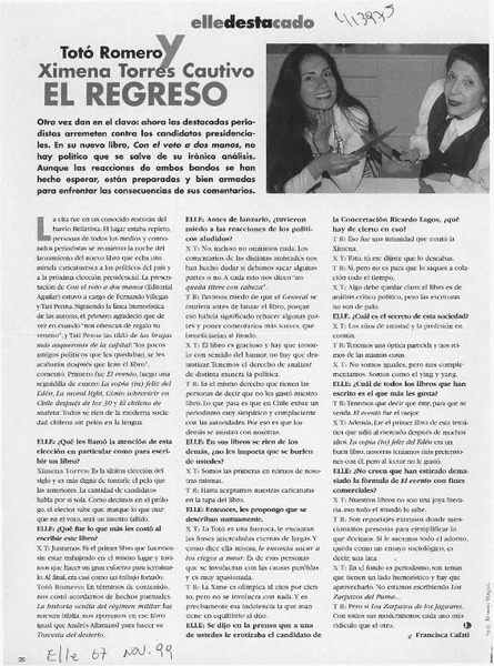 El regreso [artículo] Francisca Cafati