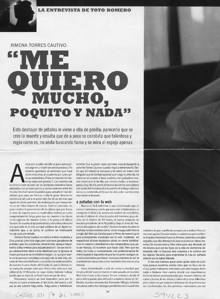 "Me quiero mucho, poquito y nada" [artículo] Toto Romero