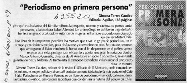 "Periodismo en primera persona" [artículo]