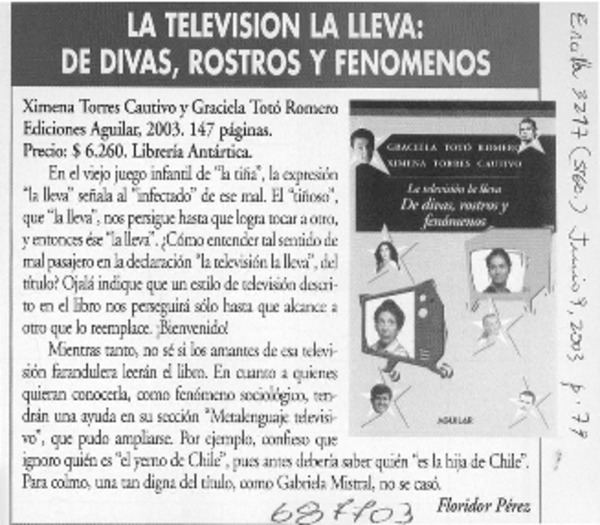 La televisión la lleva, de divas, rostros y fenómenos [artículo] Floridor Pérez.